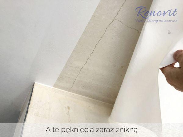 Na zdjęciach widzicie efekt naszej siedmiodniowej pracy w domu jednorodzinnym. Zabezpieczyliśmy 500m2 ścian, sufitów i skosów przed pękaniem, zrobiliśmy mostkowanie, czyli zlikwidowaliśmy istniejące pęknięcia – nie małe, jak widać. Przygotowaliśmy idealnie gładkie ściany, pod finalne malowanie. Dziwi was zapewne, że nie toniemy w chmurach budowlanego pyłu.